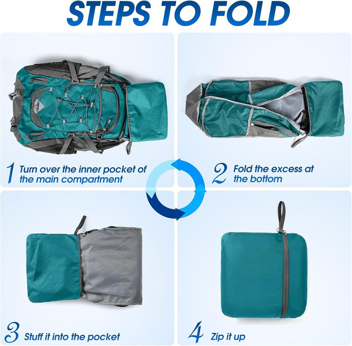 - Faltbare Leichte Wanderrucksack: Dieser daypack lässt sich leicht auf eine Grösse von nur 27 x 27 cm zusammenfalten und nimmt nur sehr wenig Platz ein. Im aufgeklappten Zustand hat der Rucksack ein grosses Fassungsvermögen von 40 Litern und eignet