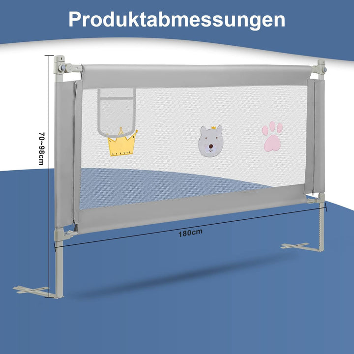 - 【Sicher und Stabil】Der Babybettgitter ist aus hochwertigem, verdicktem Stahlrohr gefertigt, und der obere Handlauf ist mit hochgesättigtem und flexiblem, verdicktem Weichschaum überzogen. Der Stoffbezug des Geländers besteht aus atmungsaktivem und
