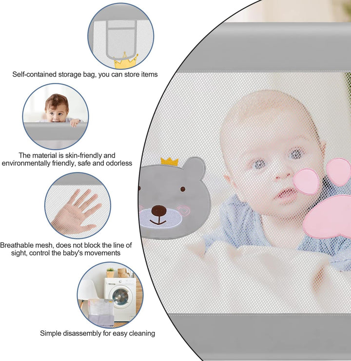 - 【Leicht zu Reinigen】Der Netzbezug des Bettgitters ist waschbar und wiederverwendbar, so dass Sie ihn jederzeit leicht reinigen können. Die Stickerei mit dem Niedliche Bärenmuster auf dem Netzbezug macht das Bettgitter nicht nur schöner, sondern