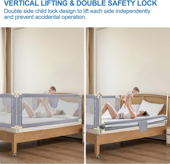 - 【Sicher und Stabil】Das Babybettgitter ist aus hochwertigem Kohlenstoffstahl gefertigt, sehr stark und langlebig, nicht leicht zu brechen; gleichzeitig ist das Leinengewebe atmungsaktiv und bequem, so dass Ihr Baby eine bessere Sicherheit während des