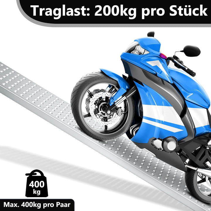 - ✅ Die hochwertigen Auffahrrampen werden im praktischen 2er Set geliefert und helfen beim kinderleichten Verladen von Rasenmähern, Motorrädern, Mopeds, Quads, Rollstühlen, Rasentraktoren, Baumaschinen usw. Ihnen sind kaum Grenzen gesetzt.