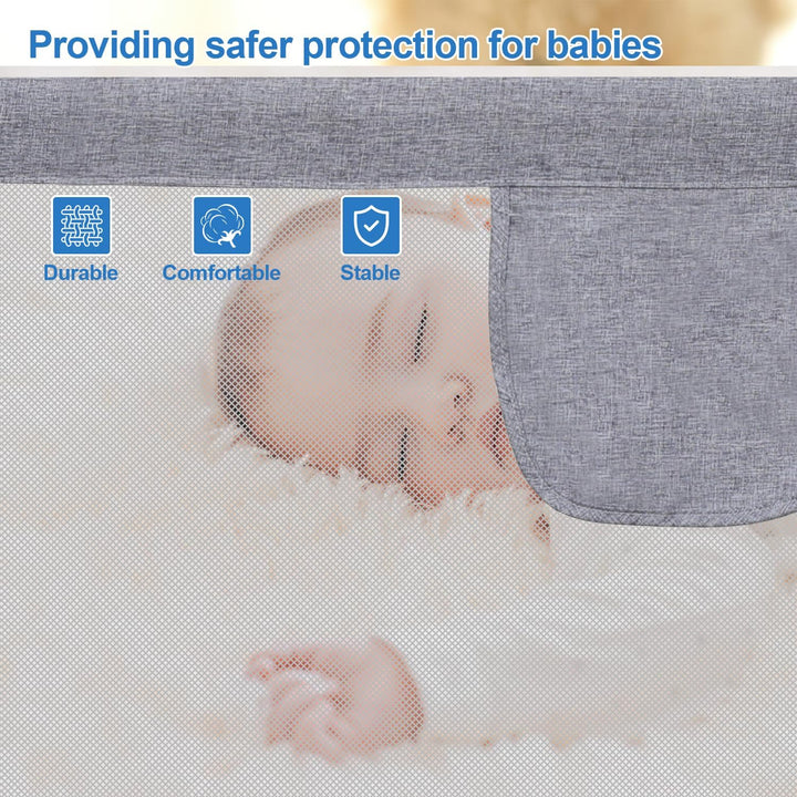 - 【Sicher und Stabil】Das Babybettgitter ist aus hochwertigem Kohlenstoffstahl gefertigt, sehr stark und langlebig, nicht leicht zu brechen; gleichzeitig ist das Leinengewebe atmungsaktiv und bequem, so dass Ihr Baby eine bessere Sicherheit während des