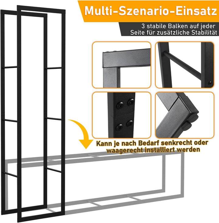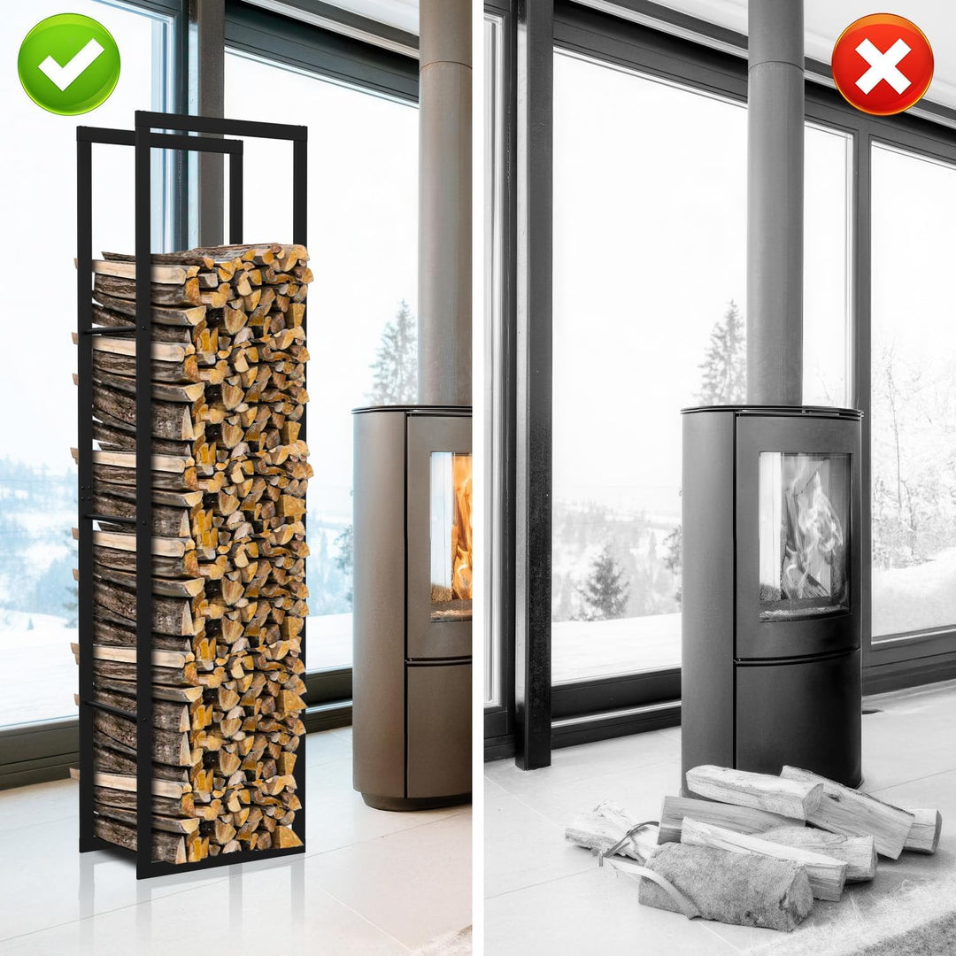 - đ„ăStauraumăKaminholzstĂ€nder hat eine grosse KapazitĂ€t. Grösse des Produkts: 40x25x150CM. Lagergewicht: 200kg. Farbe: schwarz. Produktgewicht: 7,8kg.