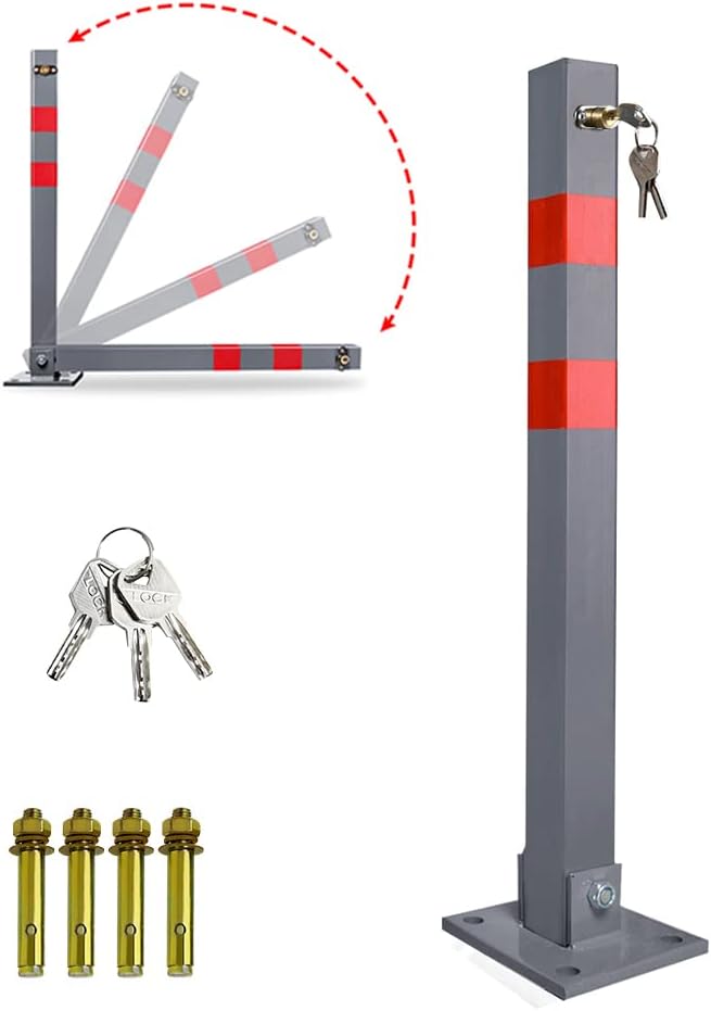 Ikodm Parkpfosten klappbar Absperrpfosten mit 3 Schlüssel, Stahl Parkplatzsperre Parkplatzsperren mi