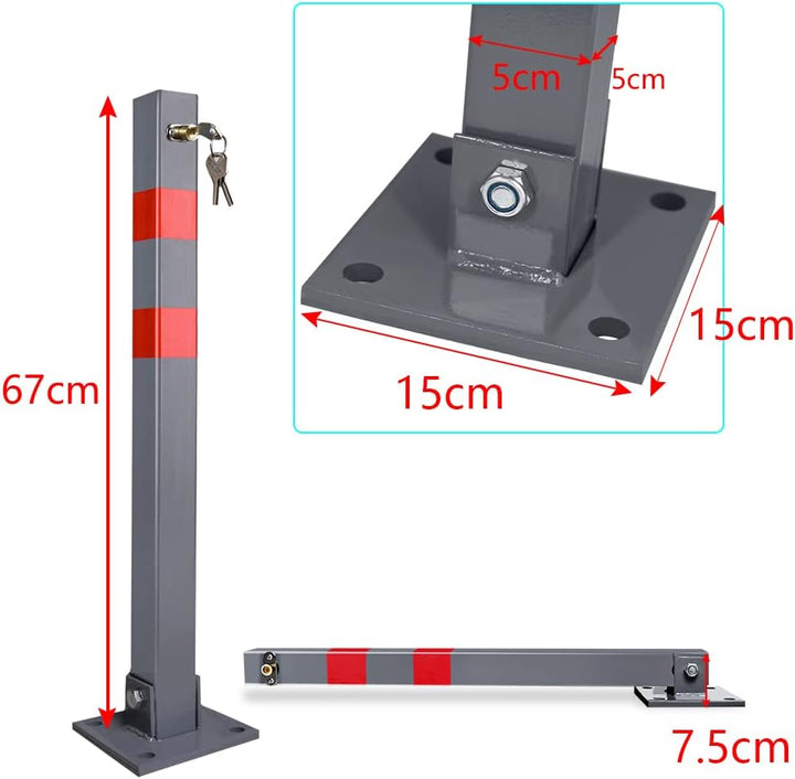 • 【Passende Grösse】Diese Parkpfosten-Grösse ist 5*5*67cm, Bodenplattengrösse ist 15*15cm, Rohrinnendurchmesser: 4cm, Höhe im zusammengeklappten Zustand beträgt nur 7,5cm, grundsätzlich für alle Fahrzeuge anwendbar.