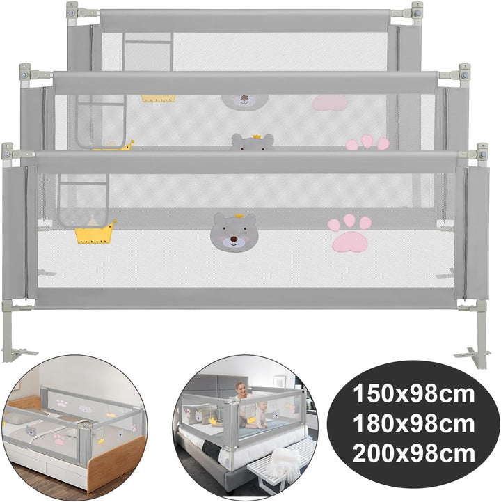 - 🛌Höhenverstellbar: Unsere Bettgitter haben eine minimale Höhe von 70 cm und sind in den Längen 150 cm, 180 cm und 200 cm erhältlich. Sie passen zu 99% der Betten. Die beiden Basisstützen des Bettschutzgitters bieten 28 einstellbare Positionen,