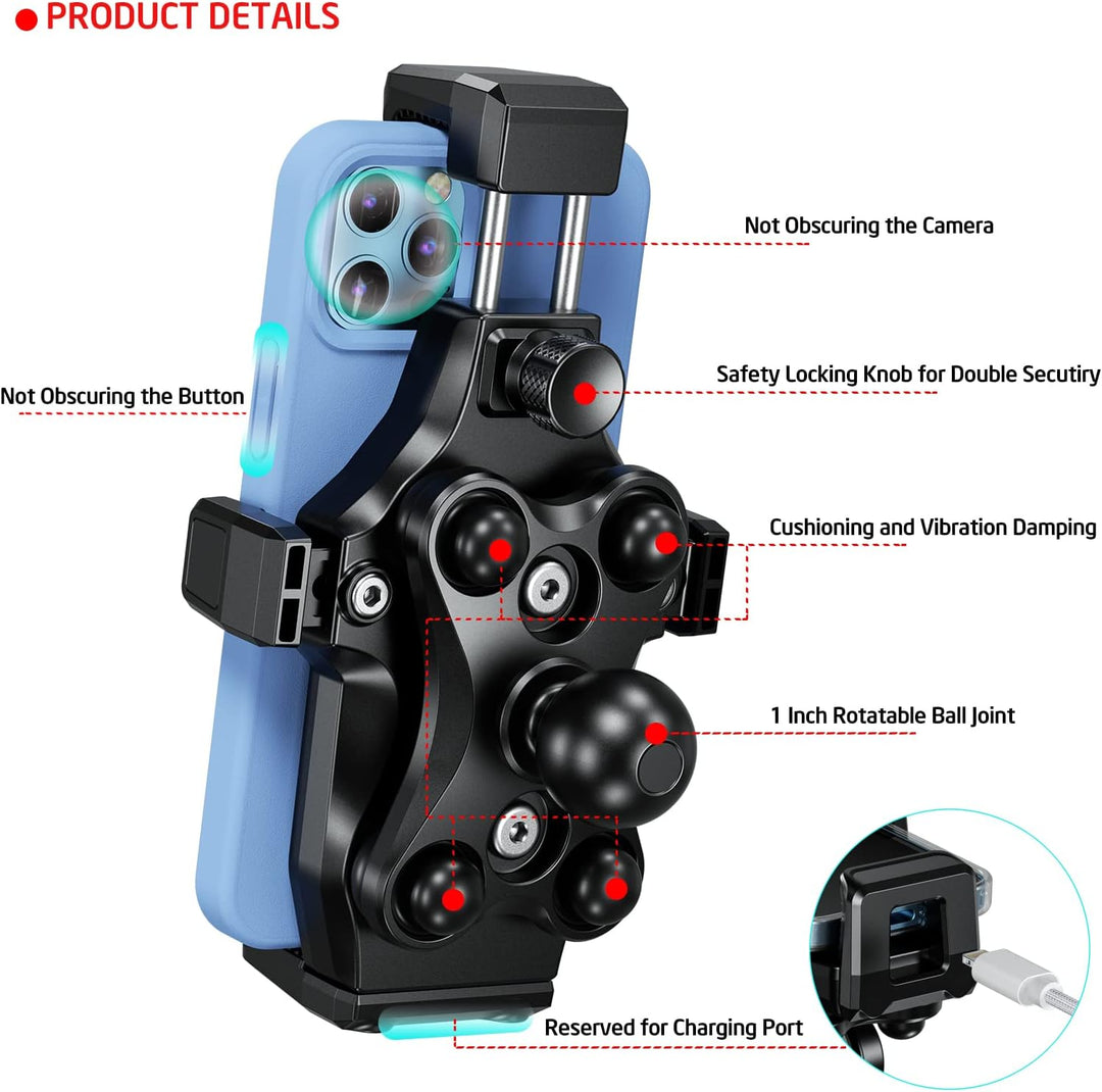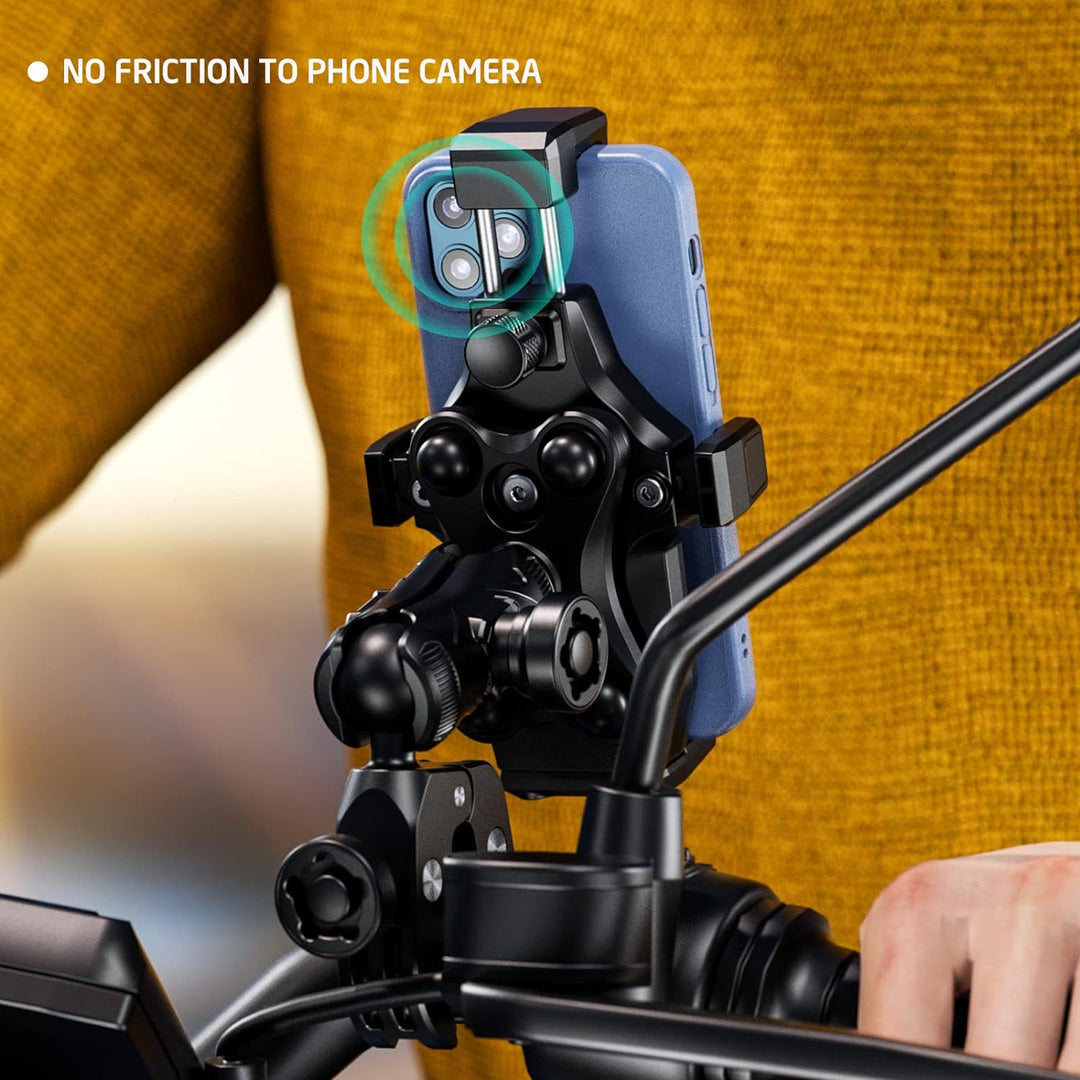 - [Keine Blockierung/Reibung an der Telefonkamera]Der obere klemmarm dieses anti-schock motorrad telefonhalters vermeidet absichtlich den telefonkamerateil, um zu verhindern, dass er durch den arm blockiert wird. Die Edelstahl dünne doppelte bar