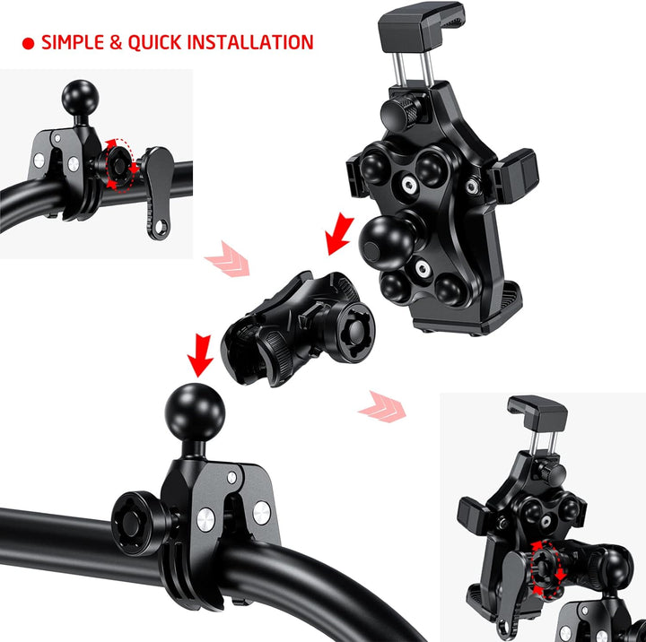 - [Werkzeuglose Installation Klauenklemmarm]Der lenker montage basis kann schnell installiert / demontiert werden, indem sie schrauben / schrauben sie den schlüssel. Super einfach zu installieren! Die handyhalterung für den lenker ist universell für