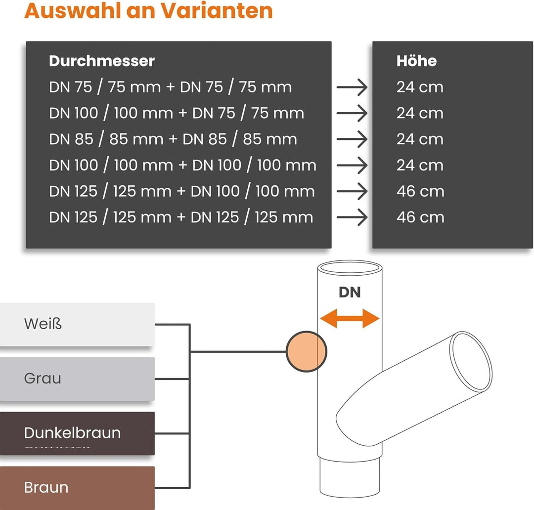 • VERBINDUNG ZUM HAUPTFALLROHR: Mit dem Abzweiger für Fallrohre können Seitenrohre in einem Winkel von 60° in das Hauptfallrohr eingebunden werden
