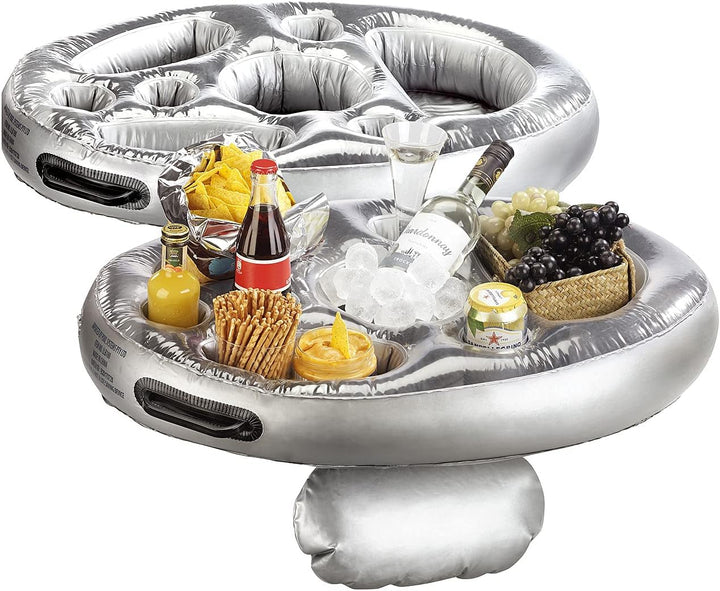 - 5 runde Fächer für Getränke, Eiswürfelbehälter u.v.m. • 3 ovale Fächer für Snacks und Knabbereien • Mit Wasser befüllbare Kammern für festen Halt am Beckenrand • 2 Griffe zum einfachen Ziehen und Vertauen