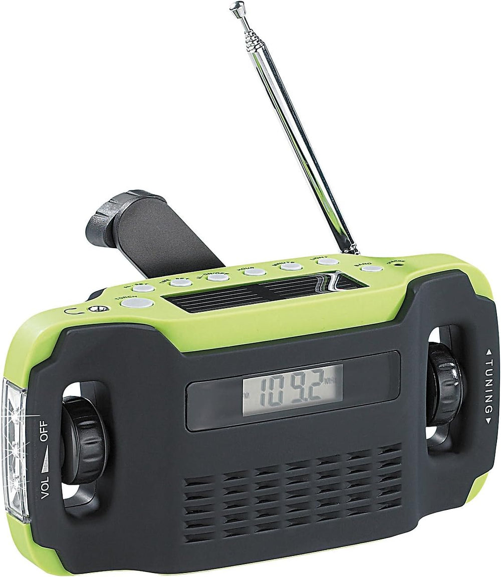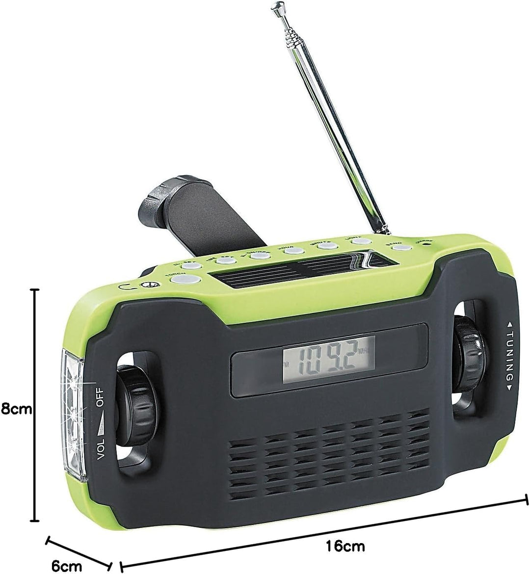 - Empfangsstarkes Outdoor-Radio • Beleuchtetes LED-Display mit digitaler Zeitanzeige und Weckfunktion • Ausziehbare Antenne: bis 37 cm • 1 Minute (bei 3 Umdrehungen/Sek.) kurbeln für 25 Minuten Musikgenuss