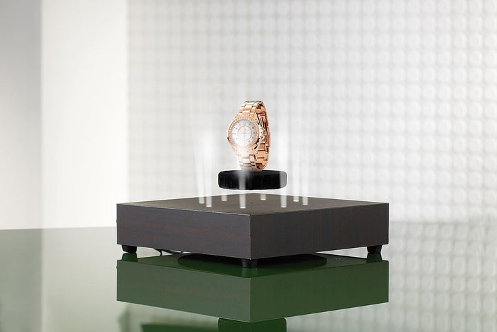 - Aufsehen erregende Magnet-Schwebebasis in edler Holz-Optik • Objekte drehen sich freischwebend • Masse: Basis 17,5 x 17,5 x 4,5 cm, Schwebeteller Ø 6 cm