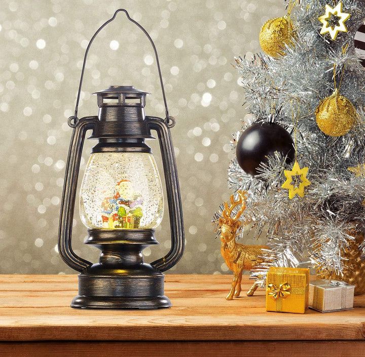 - Ideal als Geschenk oder Dekoration zum Fest • Schneewirbel-Effekt dank Mini-Ventilator • Öllampen-Design in antikem Messing-Look • Stromversorgung: 3 Batterien Typ AA / Mignon (bitte dazu bestellen)