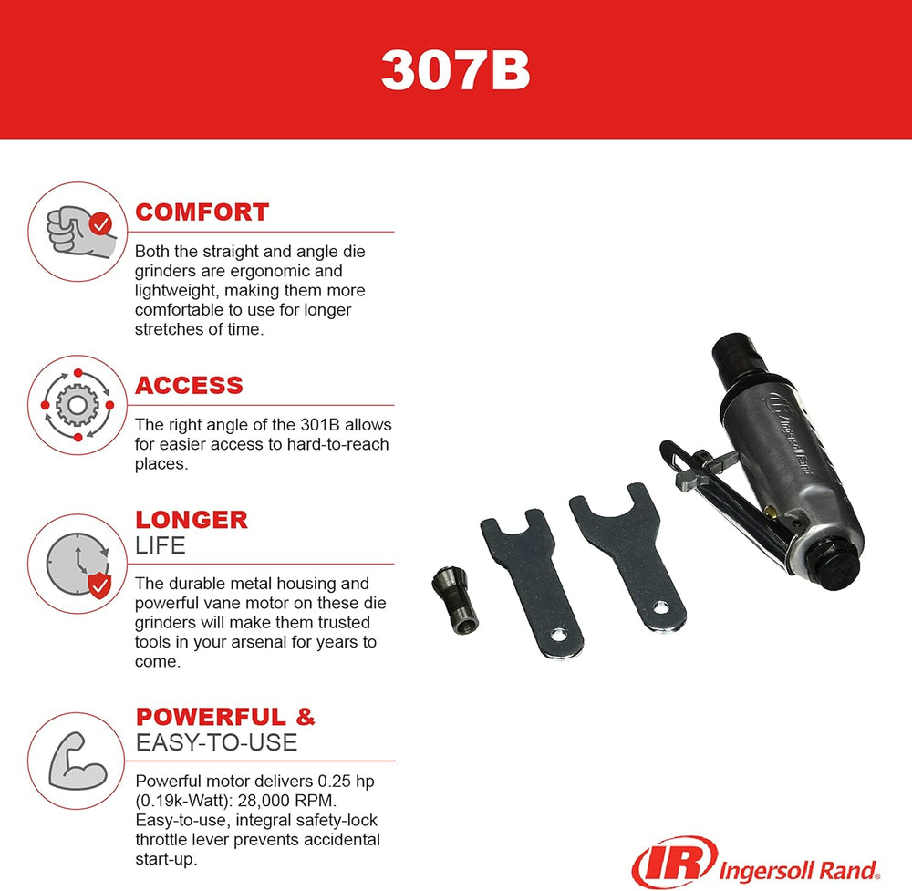 - PROFI-TOOL: Der Ingersoll Rand 307B-M gerade Geratschleifer ist ein kostengünstiges Profi Werkzeug für die leichte Wartung. Der leistungsstarke Motor liefert 0,19 kW und 28.000 U/min.