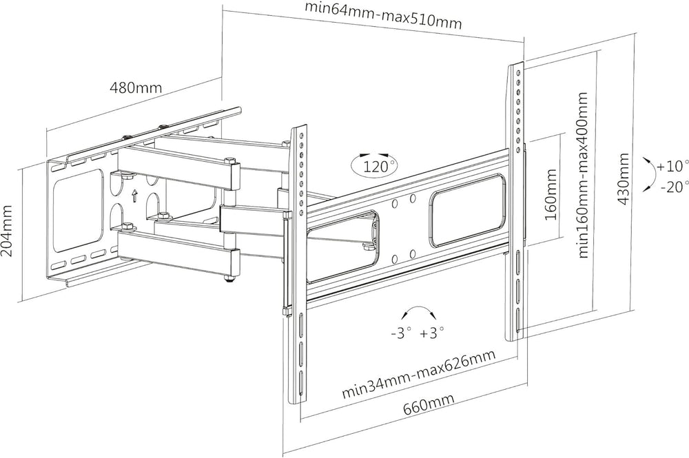 - Für folgende VESA Lochabstände geeignet: 200x200mm 400x200mm, 300x300mm, 400x400mm, 600x400mm