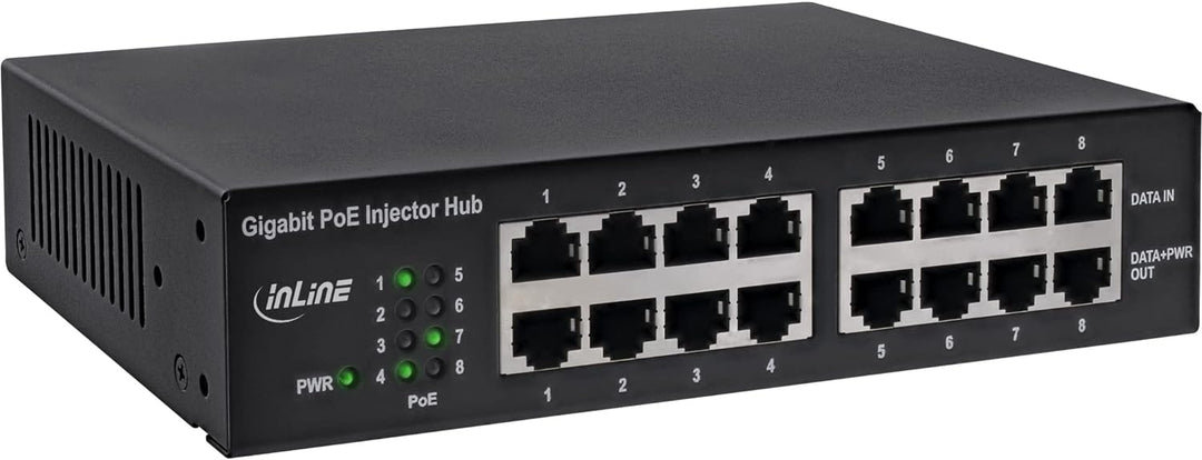- Ports "DATA IN": 8x 10/100/1000Base-T RJ45, Auto-MDI/MDI-X