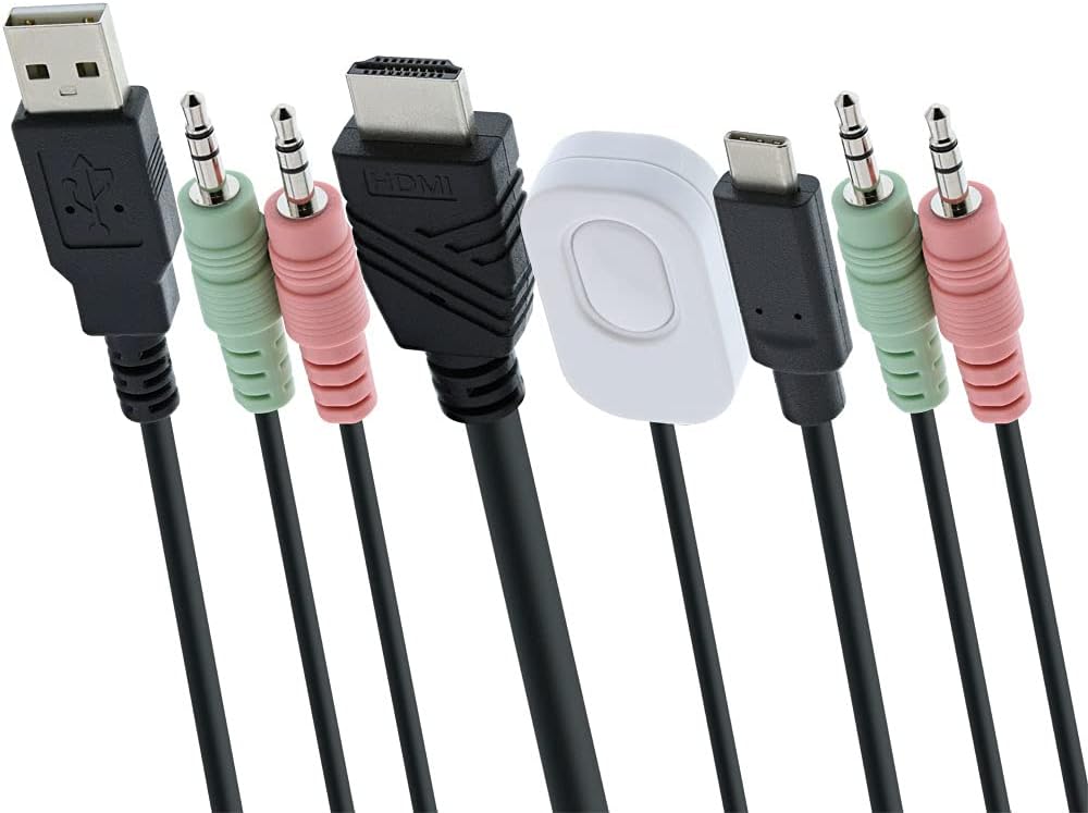 - 2 integrierte 1,2m KVM-Kabel, Video/Audio/Mikrofon-Kombinations-Kabel mit USB-C bzw. HDMI + USB-A