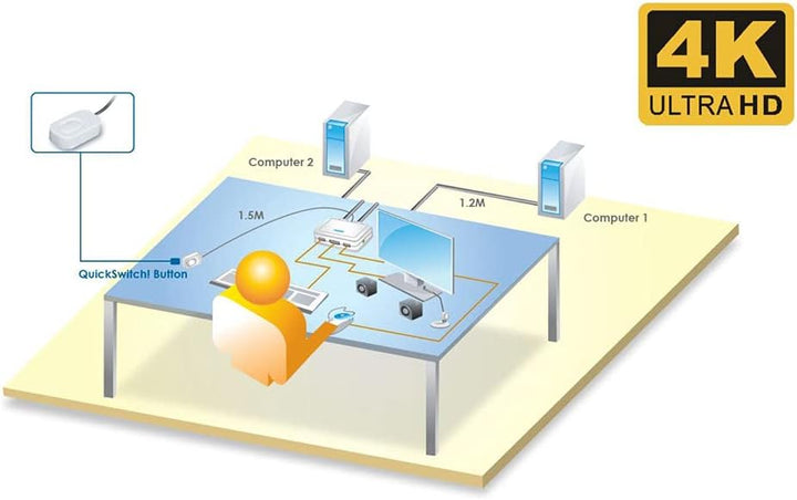 - 1x kabelgebundene QuickSwitch! Taste für sofortiges Umschalten per Knopfdruck (1,5m)