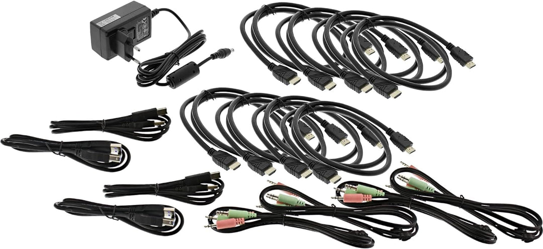 - Vier Computer auf einer Konsole (bestehend aus 2x HDMI Monitor, 1x USB Maus und 1x USB Tastatur)
