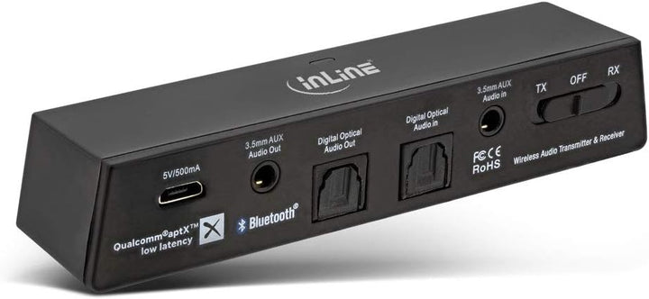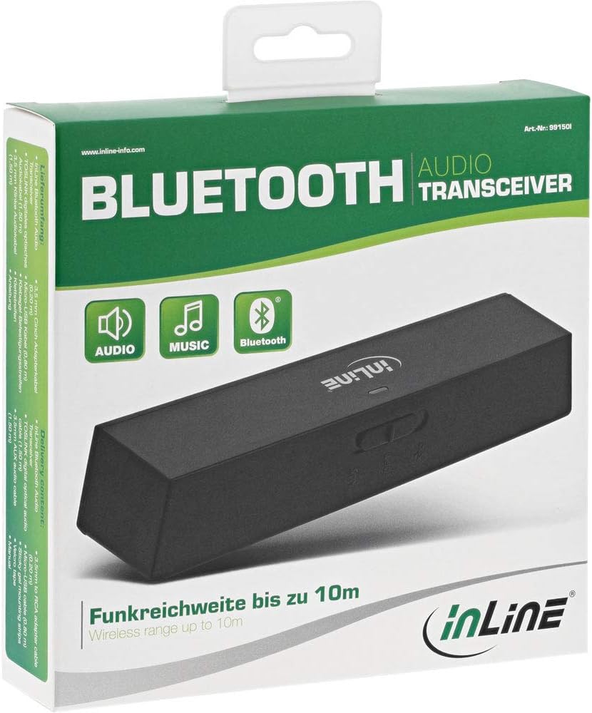 - Der InLine Bluetooth Audio Transceiver ist ein kompakter Bluetooth-Audio-Sender, der drahtlose Hi-Fi Audiosignale von Ihrem TV oder Ihrer Hi-Fi Musikanlage zu Ihrem bevorzugten Paar Bluetooth-Kopfhörer oder Lautsprecher streamt.