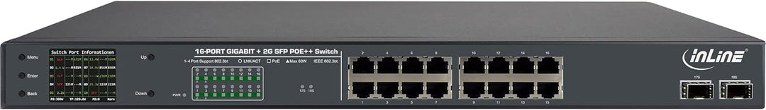 - Der InLine PoE++ Gigabit Netzwerk Switch ist eine schnelle und flexible Lösung für ein Upgrade des bestehenden Netzwerks auf das Power over Ethernet System IEEE 802.3af / 802.at / 802.3bt sowie einer Verbindung über Glasfaser, um grössere Distanzen