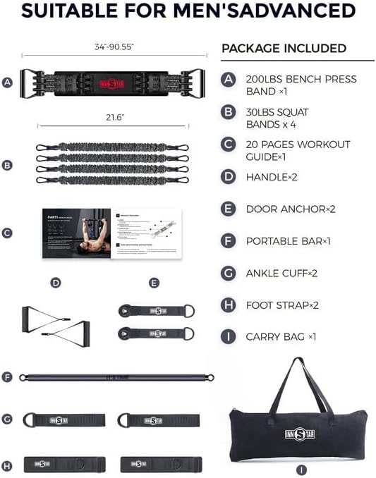 - ★ FITNESSGERÄT IN PROFESSIONELLER QUALITÄT: Hochwertiges Widerstandsband für schwere Übungen. Widerstandsband aus Naturlatexmaterial mit 38-Zoll-Trainingsstange, 4 * 21-Zoll-Squat-Bändern für Ganzkörperübungen. Kommt auch mit 2 * Türankern, 2