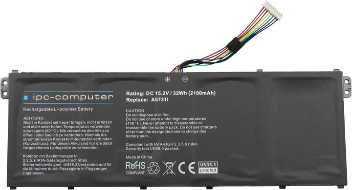 • IPC-Computer Replacement Akku passend für Acer Predator Helios 300 (G3-571), 300 (G3-572), 300 (PH315-51), 300 (PH317-51), 300 (PH317-52)/,Spin 1 (SP111-31),Spin 1 (SP113-31), Spin 3 (SP315-51)/Spin 5 (SP513-51)/Spin 5 (SP515-51GN)/Spin 5 (SP515-51N)