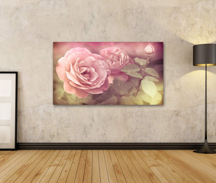 islandburner Bild auf Leinwand Abstrakt Romantisch Rosa Rosen Blumen Wassertropfen Floral Bilder Wan