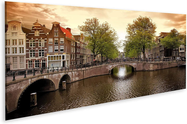 islandburner Bild auf Leinwand Amsterdam Grachten Bilder Wandbilder Poster Leinwand 120x40cm - Panor