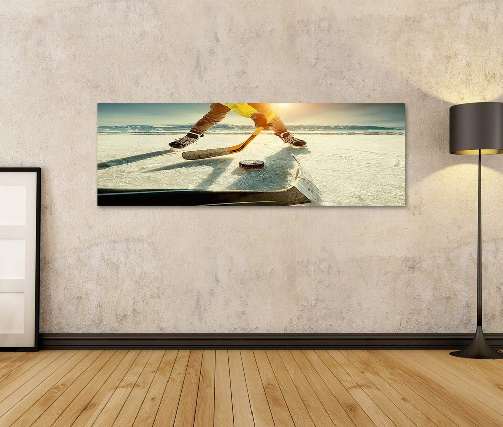 islandburner Bild auf Leinwand Eishockey Spiel Moment Gefrorener See Bilder Wandbilder Poster Leinwa