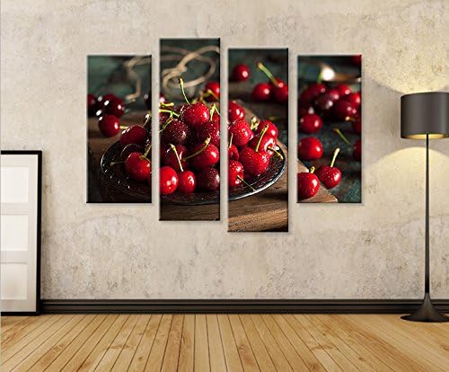 islandburner Bild Bilder auf Leinwand Kirschen Obst Küchenbild 4er XXL Poster Leinwandbild Wandbild