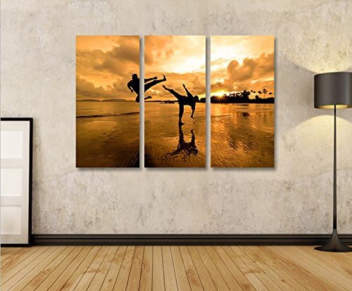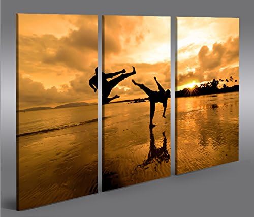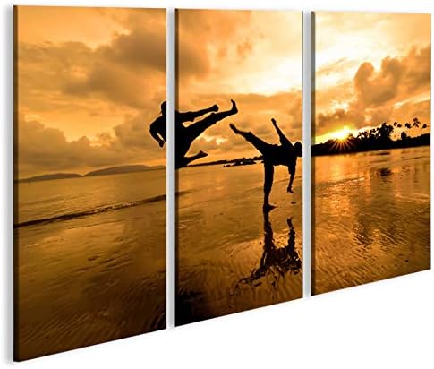 islandburner Bild Bilder auf Leinwand Kung Fu am Strand Kampfsport 3p XXL Poster Leinwandbild Wandbi