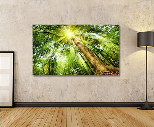 islandburner Bild Bilder auf Leinwand Leuchtender Wald Sonne Bäume 1p XXL Poster Leinwandbild Wandbi