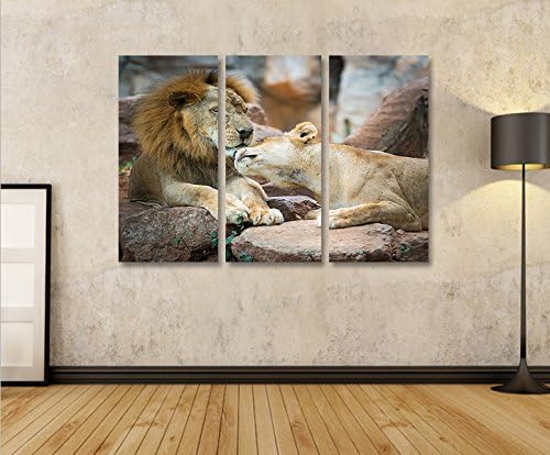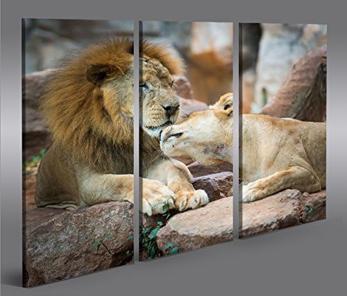 islandburner Bild Bilder auf Leinwand Löwen Paar 3p XXL Poster Leinwandbild Wandbild Dekoartikel Woh
