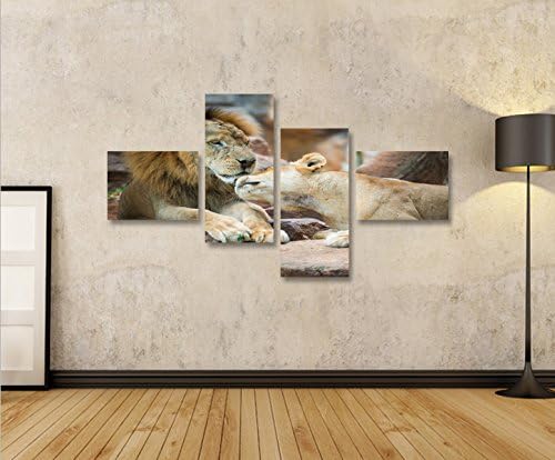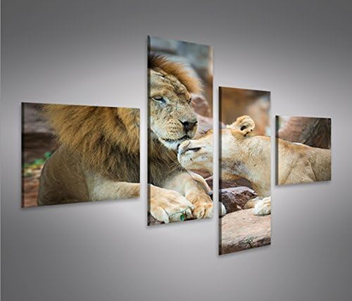 islandburner Bild Bilder auf Leinwand Löwen Paar 4L XXL Poster Leinwandbild Wandbild Dekoartikel Woh