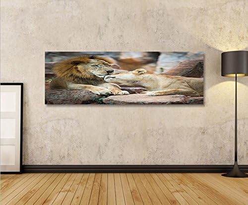 islandburner Bild Bilder auf Leinwand Löwen Paar Panorama XXL Poster Leinwandbild Wandbild Dekoartik