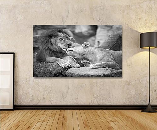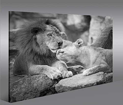 islandburner Bild Bilder auf Leinwand Löwen Paar SW Schwarz Weiss 1p XXL Poster Leinwandbild Wandbil