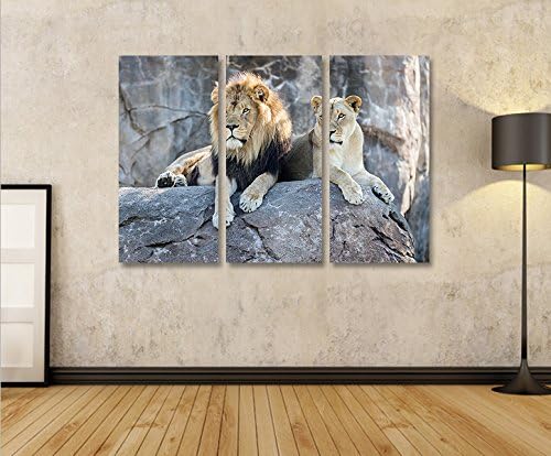 islandburner Bild Bilder auf Leinwand Löwen Paar V2 3p XXL Poster Leinwandbild Wandbild Dekoartikel