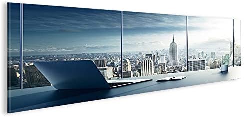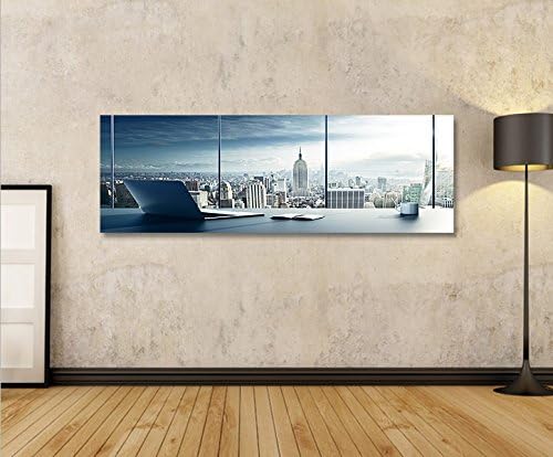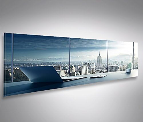islandburner Bild Bilder auf Leinwand Manhattan V2 New York Büro Panorama XXL Poster Leinwandbild Wa