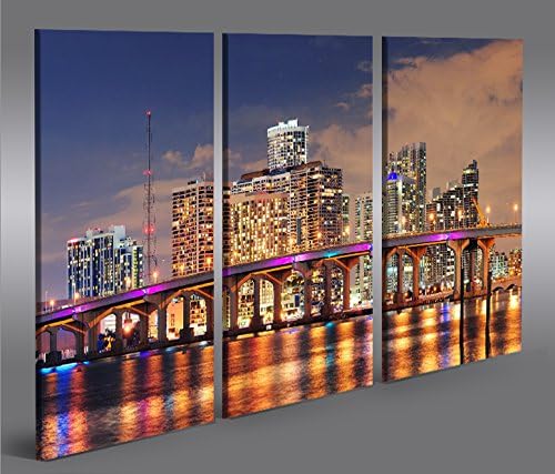 islandburner Bild Bilder auf Leinwand Miami V3 Florida Beach Skyline 3p XXL Poster Leinwandbild Wand