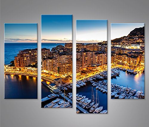 islandburner Bild Bilder auf Leinwand Monaco V2 Montecarlo Hafen Yachthafen 4er XXL Poster Leinwandb