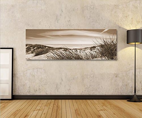 islandburner Bild Bilder auf Leinwand Nordseestrand Sepia Dünen Panorama XXL Poster Leinwandbild Wan
