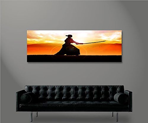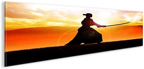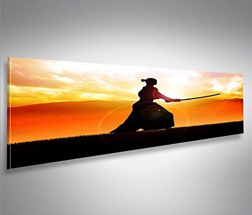 islandburner Bild Bilder auf Leinwand Samurai Kämpfer im Sonnenuntergang Panorama XXL Poster Leinwan