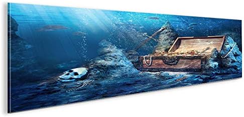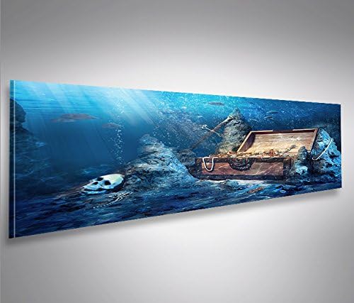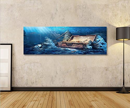 islandburner Bild Bilder auf Leinwand Schatztruhe Tauchen Unterwasser im Meer Panorama XXL Poster Le