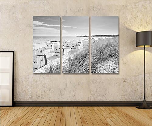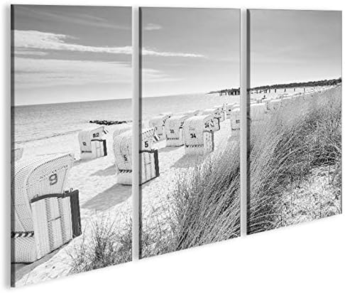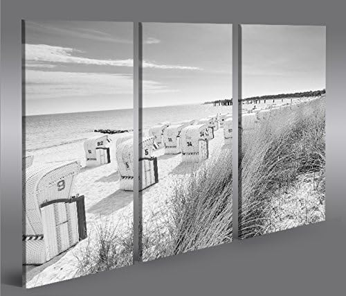 islandburner Bild Bilder auf Leinwand Strandkorb Schwarz/Weiss Nordseestrand 3p XXL Poster Leinwandb