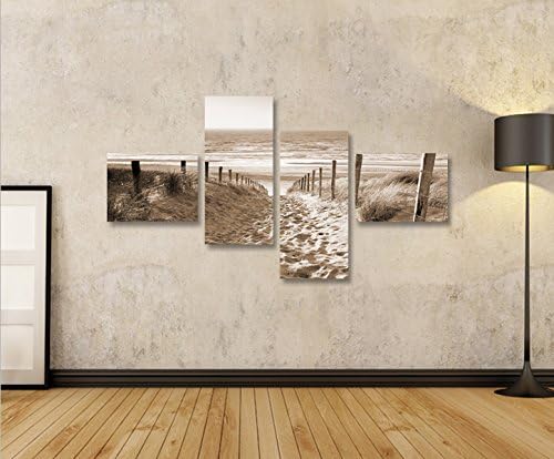 islandburner Bild Bilder auf Leinwand Weg zum Meer Sepia Nordseestrand 4L XXL Poster Leinwandbild Wa