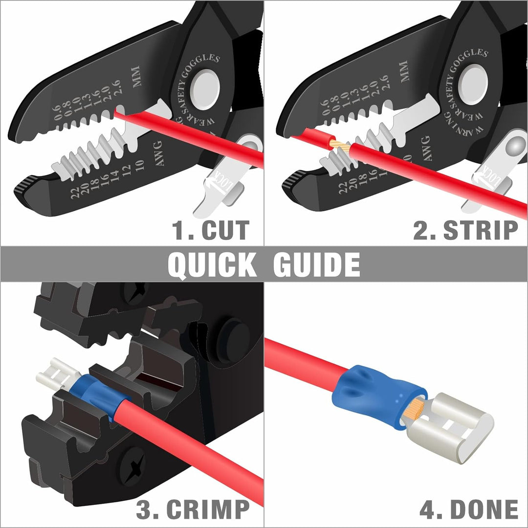 - 【ARBEITSSPARENDER BETRIEB】Das Design der Crimpzange sorgt für einen geringen Kraftaufwand beim Crimpen und behält gleichzeitig eine hohe Abzugskraft bei. Die eingebaute Ratsche sorgt jedes Mal für eine gleichmässige Crimpung. Die zusammengesetzte
