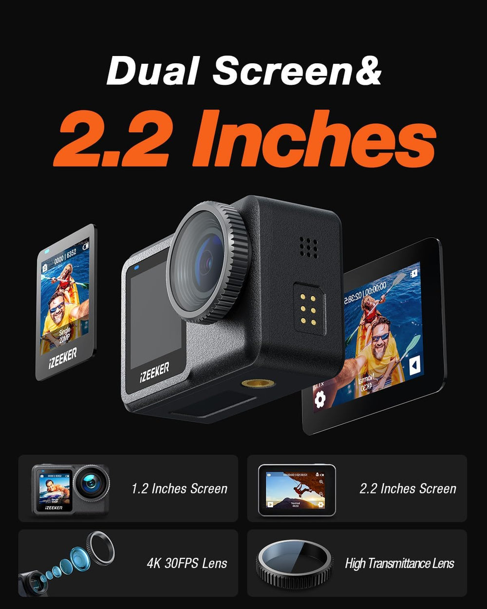- 【4K30FPS VIDEO & 20MP PHOTO】 iZEEKER iA400 action cam unterstützt 4K30FPS HD-Videoaufnahmen und bis zu 20MP Fotos, zeichnen Sie Ihr Leben mit klareren Aufnahmen auf. 5GHz Dateiübertragungsgeschwindigkeit ist 3 mal schneller als andere 2.4G WiFi