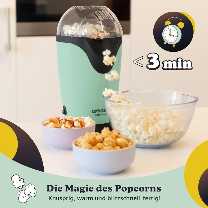 - Schnelles Popcorn: Mit diesem benutzerfreundlichen Popcorn-Macher können Sie in weniger als drei Minuten köstliches Popcorn geniessen. Das effiziente System zur Zirkulation von heisser Luft sorgt dafür, dass Ihr Popcorn perfekt knusprig und aromatisch
