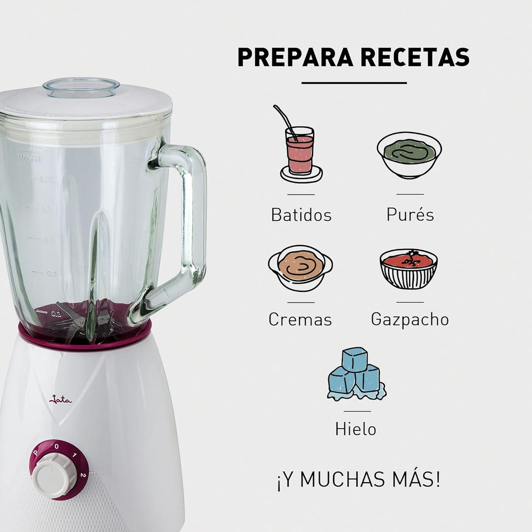 JATA BT265 Standmixer mit 2 Geschwindigkeitsstufen + Pulse, abnehmbarer Krug 1,5 l, 1300 W, Eiszerkl
